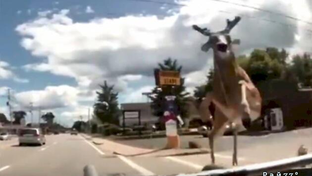Парнокопытный зверь оказался на пути автобуса, передвигающегося по улице Уорвик-авеню в городе Уорик (штат Род-Айленд, США) и, пробив лобовое стекло, проник в салон транспортного средства.