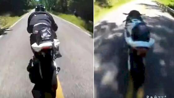 Байкер запечатлел зрелищный заезд мотоцикла без своего участия