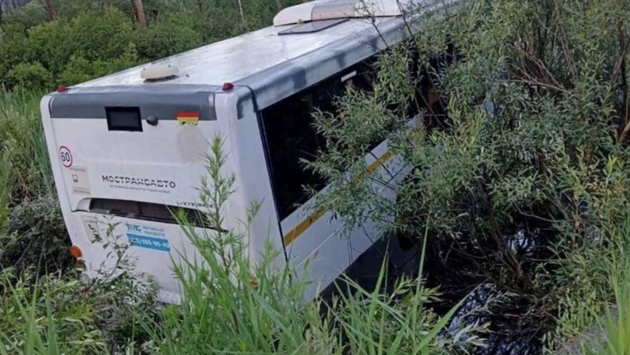 Пассажирский автобус съехал в кювет в Подмосковье. Об этом сообщает Telegram-канал «Осторожно, Москва».