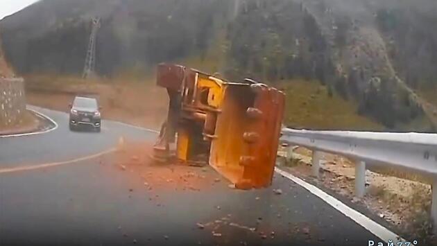 Автор видео, снятого на китайском серпантине, не уточнил деталей и последствий происшествия.