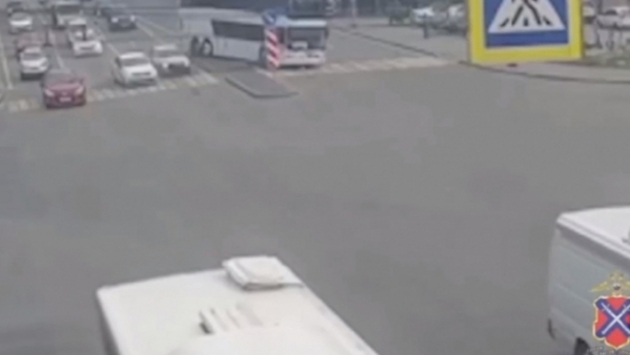 В Волгограде камера сняла момент ДТП с двухэтажным автобусом