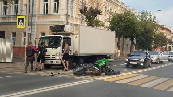В центре Рязани произошло ДТП с мотоциклом и грузовиком