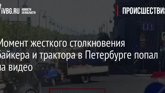 Момент жесткого столкновения байкера и трактора в Петербурге попал на видео