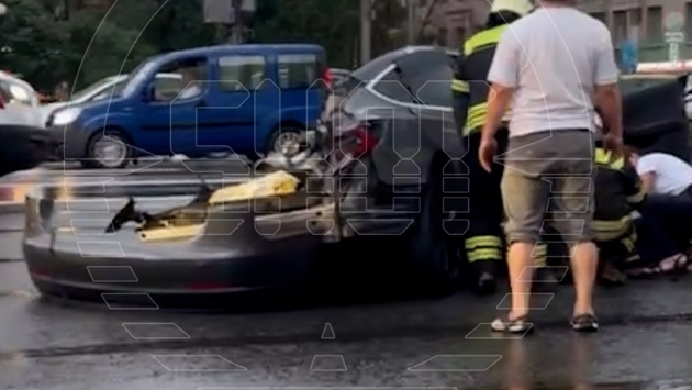Tesla разбилась «всмятку» на Кутузовском проспекте в Москве