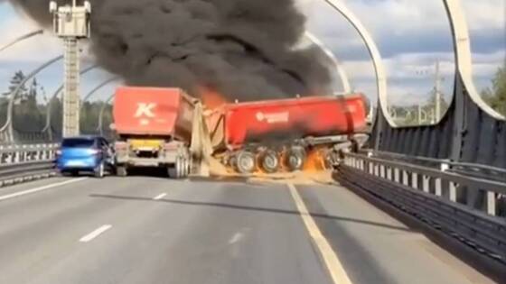 В Санкт-Петербурге на 43-м километре Западного скоростного диаметра (ЗСД) загорелись две фуры, полностью перекрыв движение транспорта по автомагистрали. Об этом сообщает Telegram-канал Shot.