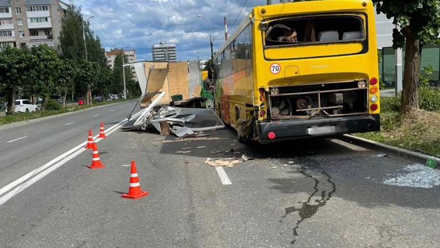В Ижевске грузовик врезался в стоящий пассажирский автобус