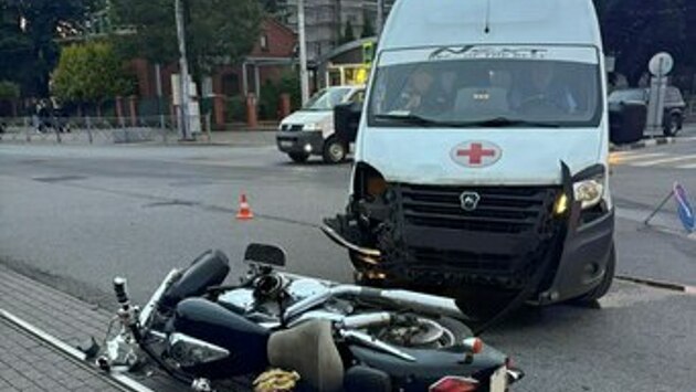 В центре Калининграда столкнулись мотоциклист и скорая.