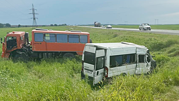 В понедельник на 41 километре автодороги Ачинск-Ужур-Троицкое водитель маршрутного микроавтобуса попытался обогнать КамАЗ и задел его, рассказали в прокуратуре региона. После удара оба транспортных средства съехали с проезжей части и оказались в нескольких метрах от дороги.