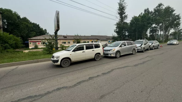 В Биробиджане собрали «автопоезд», спровоцировав столкновение четырех авто