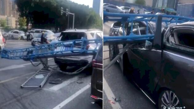 Буровая установка обрушилась на трассу и повредила несколько автомобилей