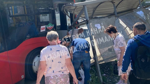 Автобус с пассажирами на скорости протаранил остановку в Казани. Водитель въехал в павильон в попытке избежать ДТП с машиной такси.