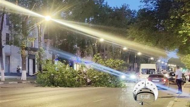 Во вторник вечером, 16 июля, в центре Самары упало дерево и повредило два автомобиля. Об этом в своем телеграм-канале сообщает блогер Евгений Щекин.