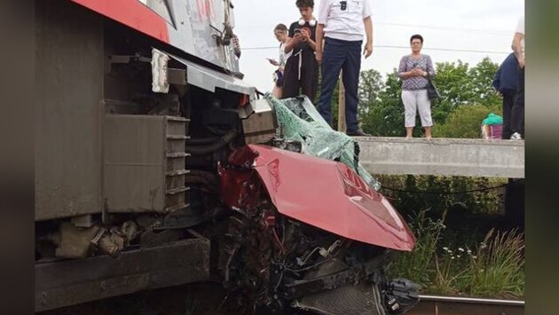 В ОЖД добавили, что водитель легкового автомобиля выехал на железнодорожный переезд при запрещающем сигнале светофора и исправно действующей переездной сигнализации перед приближающимся поездом. Машинист применил экстренное торможение, но столкновения избежать не удалось.