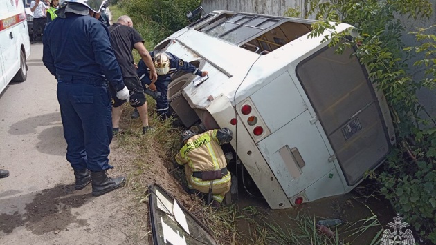 Число пострадавших в ДТП с автобусом в Кстовском округе выросло до 14, сообщает УГИБДД по Нижегородской области. Сотрудники МЧС уже эвакуировали пассажиров из автобуса и отключили аккумуляторную батарею. чтобы избежать возможного возгорания. Напомним, ДТП с рейсовым автобусом произошло сегодня, 22 июля, около 12.00. Автобус №101 «Кстово-Зелецино» съехал в кювет. Предварительно, около промзоны водитель не справился с управлением, наехал на обочину и совершил опрокидывание. В автобусе находились 19 человек. По данным областного минздрава, всех пострадавших доставляют в Кстовскую ЦРБ и областную клиническую больницу имени Семашко. 8 человек находятся в состоянии средней степени тяжести, ещё трое — легкой. Медики оказывают пациентам всю необходимую помощь. Сотрудники Госавтоинспекции устанавливают все обстоятельства ДТП. Прокуратура области организовала проверку. Как сообщили в надзорном ведомстве, будет дана оценка исполнению законодательства при оказании услуг по перевозке граждан.