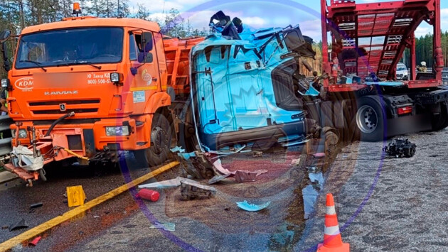 «Две фуры превратились в металлолом на 516-м км трассы М11 «Нева»: на полной скорости водитель Shacman наехал на грузовик ремонтников», — говорится в публикации.