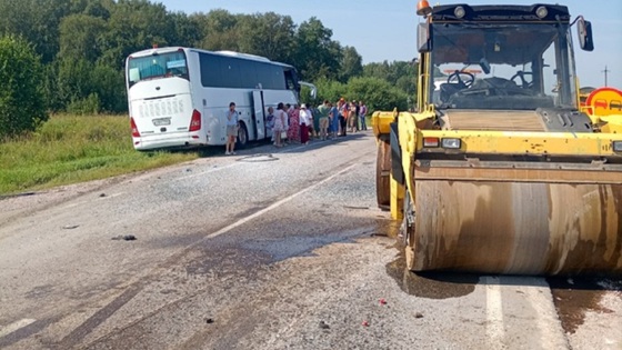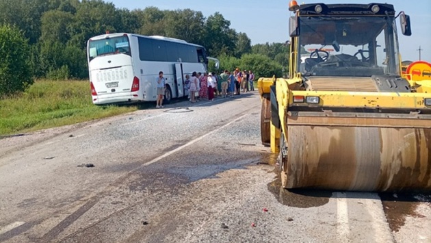 Автобус с пассажирами врезался в каток в Новосибирской области