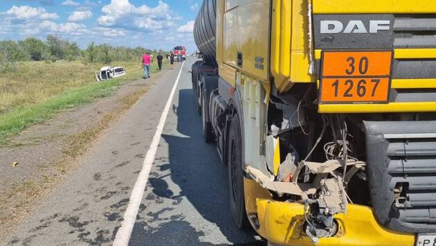 Под Оренбургом легковушка столкнулась с фурой и улетела в кювет