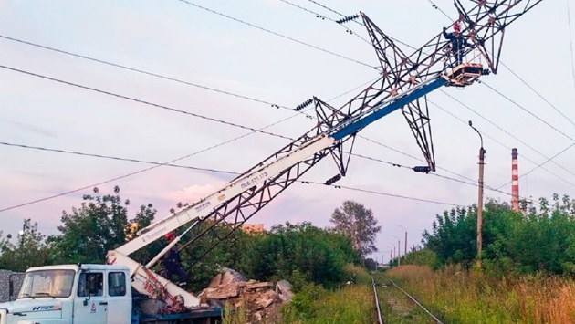 Поврежденную погрузчиком опору ЛЭП в Бердске демонтируют