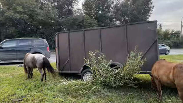 Появилось видео, как пьяный водитель "Жигули" врезался в прицеп с пони
