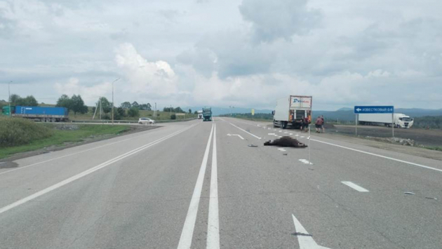 В Еврейской автономной области домашнее животное угодило под колеса двигавшейся по трассе машины. Корова не смогла пережить столкновение.