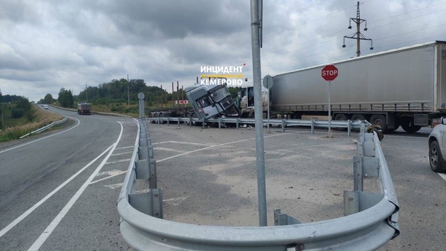 Последствия произошедшего запечатлели на фото. Судя по опубликованным кадрам, оба большегруза в результате случившегося получили урон.