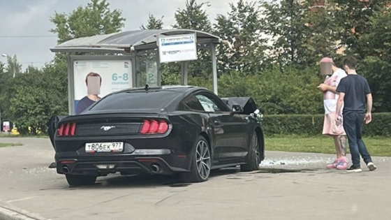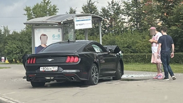 На западе Москвы Ford Mustang протаранил остановку с людьми