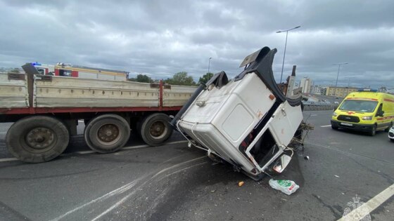 Большегруз и легковой автомобиль столкнулись на метромосту в Нижнем Новгороде