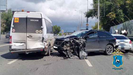В Самаре на Ново-Садовой "Лексус" врезался в микроавтобус и отлетел на "Гранту"