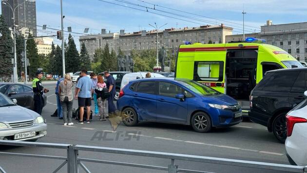 «Приехал в заднюю дверь хэтчбека на площади Ленина. На месте аварии реанимобиль и сотрудники ДПС. Парень лежит на спине, тычет в телефончик», — сообщили очевидцы в паблике АСТ-54.