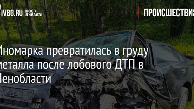 Иномарка превратилась в груду металла после лобового ДТП в Ленобласти