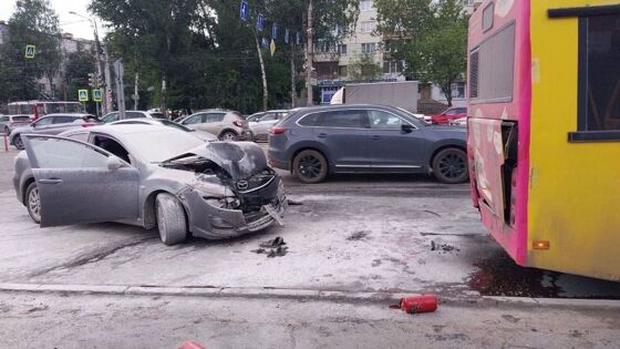 На улице Удмуртской в Ижевске автомобиль загорелся после ДТП