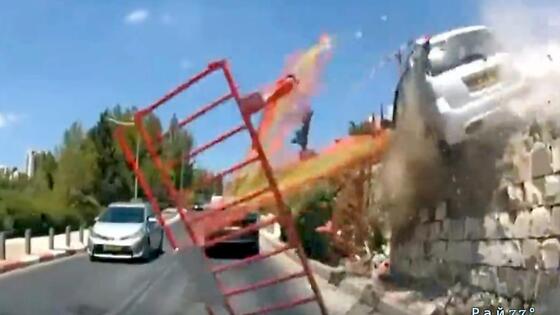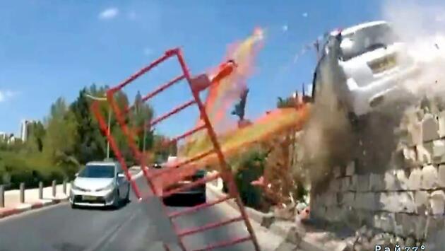 Автомобиль проломил ограждение и преградил путь легковушке в Иерусалиме