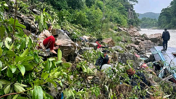 "Автобус упал в реку и лежит на берегу", - указал представитель окружного полицейского управления Дипкумар Рая.