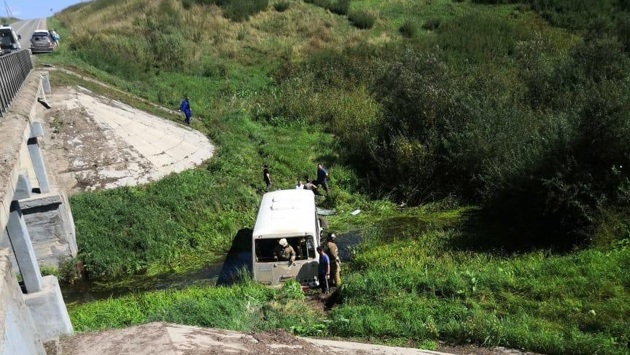 Судя по опубликованным ведомством снимкам с места аварии, автобус оказался в овраге под установленным на трассе путепроводом. На месте также работают сотрудники МЧС.