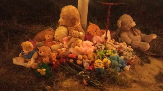 Люди, шокированные случившимся, откликнулись на трагедию и принесли к подножию рекламного щита, о которое ударилась «Лада-Приора», мягкие игрушки, живые цветы, кто-то привез небольшой самокат.
