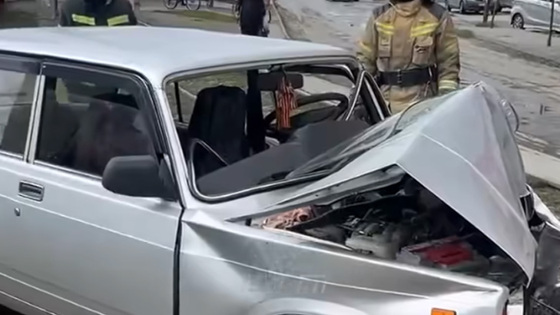 Сообщается, что водителю седана ВАЗ-2107 стало плохо за рулем. В итоге 83-летний мужчина нажал на газ и автомобиль буквально влетел в столб на большой скорости.