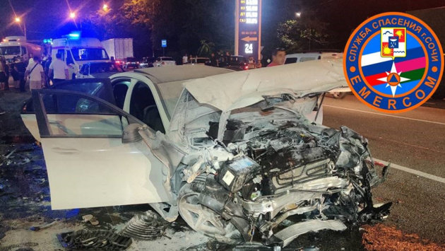 Спасатели с помощью гидравлики вытащили двух зажатых пассажиров из иномарки в Сочи