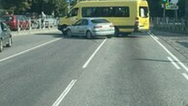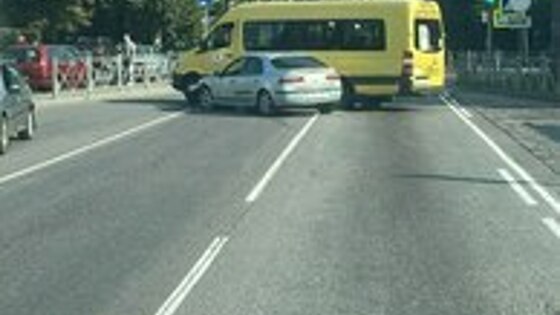 В Борисово маршрутка столкнулась с легковушкой, машины перегородили дорогу