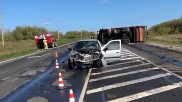 В 11:17 на автодороге Сергач — Пильна водитель автомобиля Renault Symbol, предположительно, превысил скорость. Это привело к потере управления, из-за чего машина вылетела на встречную полосу. Там легковое авто врезалось в КамАЗ. Как видно на кадрах от ГИБДД, грузовик после удара рухнул на бок, а иномарка оказалась сильно повреждена.