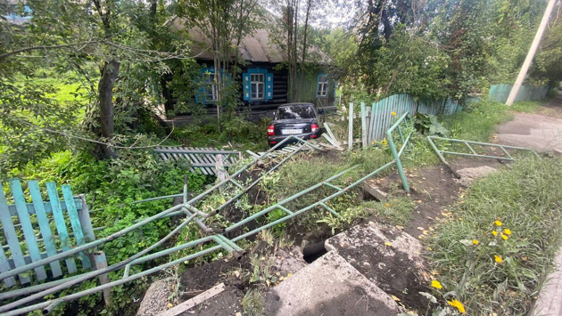 В субботу, 7 сентября, около 16:00 в Новокузнецке на улице Балтийской лихач на "Приоре" уничтожил забор и влетел во двор частного дома.