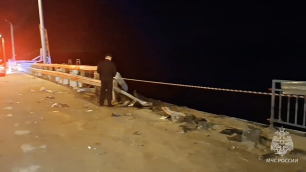 МЧС опубликовало кадры с места происшествия на Стригинском мосту в Нижнем Новгороде. Вечером 7 сентября оттуда упала фура.