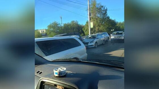 Пробка образовалась сегодня утром на Острове из-за ДТП, сообщил очевидец в редакцию ZAB.RU.