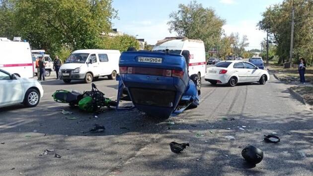 ДТП произошло 17 сентября в 12:10 в Курске, сообщает УМВд. 50-летний мужчина за рулем автомобиля ВАЗ-2110 ехал по ул.Чайковского в сторону ул.Ствнционная. Напротив дома 64, осуществляя левый разворот, не пропустил мотоцикл "Кавасаки Ниндзя 1000", который ехал в попутном направлении. В результате водитель ВАЗа погиб на месте, 42-летний водитель мотоцикла, 29-летняя жещина и ее ребенок, находившиеся в ВАЗе, были госпитализированы с травмами в медицинское учреждение.