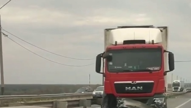 Фура влетела в отбойник на Стригинском мосту под столицей Приволжья. Видеозапись произошедшего опубликовал Telegram-канал «Мой Нижний Новгород».