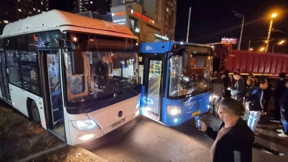 По информации Telegram-канала, инцидент произошел в районе Варшавского и Расторгуевского шоссе. Столкнулись два автобуса, автомобиль такси и самосвал. На кадрах с места происшествия видно легковую машину, которую смяло между грузовиком и общественным транспортом.