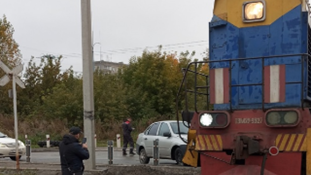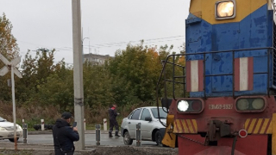 Авария на жд переезде в Новосибирске: легковой автомобиль столкнулся с тепловозом