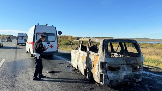 Как пояснили в ГИБДД региона, по предварительной информации, водитель микроавтобуса Toyota, двигаясь в сторону Челябинска, не выдержал безопасную дистанцию до идущего впереди грузовика Isuzu и допустил с ним столкновение, после чего микроавтобус вспыхнул.