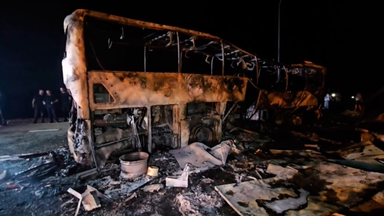 По предварительным данным, водитель грузовика 1965 года рождения выехал на полосу встречного движения и столкнулся с автобусом. После этого транспортные средства загорелись.