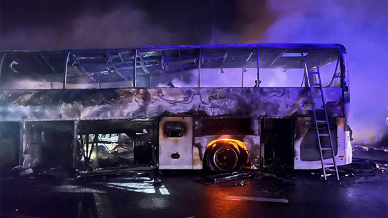 Ранее МЧС России опубликовало видео с места ДТП с грузовиком и рейсовым автобусом под Краснодаром, в результате которого один человек погиб, еще 31 пострадал. На кадрах видно сгоревшие дотла автомобили.