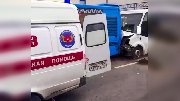 В Москве столкнулись автобус и маршрутка, есть пострадавшие